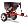 Agri-Fab towed 130lbs/ 56kg SmartSpreader. This spreader has an easy to read spreader setting dial which means you only put out the amount of product you need. Great for year-round spreading of fertilizer, pesticides and ice melt. Features Poly Hopper capacity 130lb/ 56kg. Broadcast spread wide. Unique spreader setting knob is user friendly for precise application. Spring loaded on/off lever that is inspired by commercial spreaders. Includes vinyl hopper cover and side shields Manufacturer’s 3 year warranty