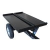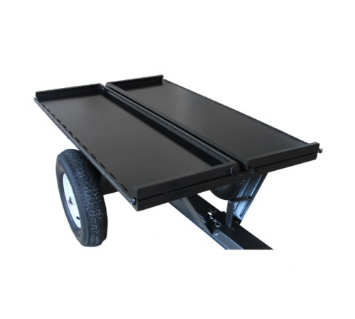 Ideal for towing behind lawn and garden tractors the Handy THGT750 trailer boasts a 340kg capacity, tipping function and folding sides. The THGT 750 has a strong durable frame carried by 16” pneumatic tyres with ball bearings. The front and side panels can be folded easily by releasing the L pin connections. This is good for oversized / longer loads and emptying the trailer. It has a foot pedal release system for easy tipping. It comes supplied with a hitch pin for attaching to your tow bar.Specifications